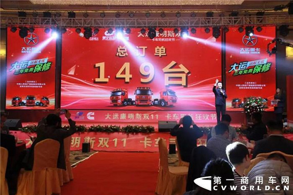 截止到8点整,停止订车。主持人公布,现场共计订车149辆!这是一项卡车界从来没有的销售记录!20分钟149辆!无人超越!