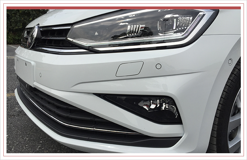 中期改款的高尔夫·嘉旅延续了在2017年法兰克福车展上发布的新款高尔夫Sportsvan的外观设计。经过全新设计的LED头灯组改为了不规则六边形状,区别于此前的五边形样式。前进气格栅内部样式也进行了调整,单根镀铬饰条贯穿logo,带来更为简洁明快的视觉效果。底部的进气格栅更为扁平,雾灯区域的线条隆起,运动感更为强烈。