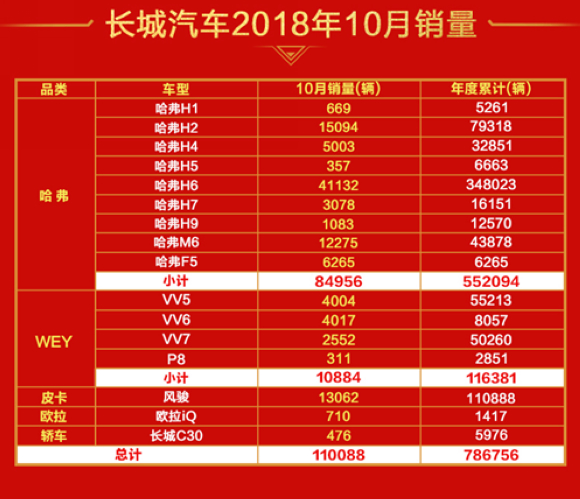 WEY品牌的表现同样可圈可点。10月销量出炉后,WEY成功成为了2018年首个年销量突破10万台的豪华SUV,为长城汽车的总销量同样做出了不小的贡献。在VV6上市后,其现有的产品布局进一步完善,品牌实力也得到了进一步加强。