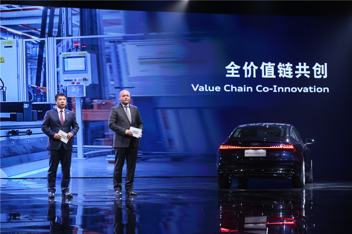 “全价值链本土化是一汽和奥迪合作三十年取得的成绩,国产化的奥迪占销售总量的90%以上,而奔驰、宝马的进口量比我们大很多,这说明我们本土化做得更彻底,更全面,也做得更深,因此,在这个点上我们还要往下做。”一汽-大众汽车有限公司董事、总经理刘亦功表示,“继往开来,我们将从‘全价值链本土化’向‘全价值链共创’模式升级,开启一汽奥迪中德团队与各方合作伙伴共创、共享、共赢的崭新画卷。”