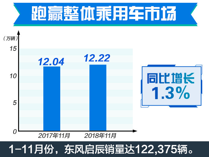 2018年对东风启辰来讲有着重要的意义,是其“二次创业”的第一个完整销售年。最新销售数据显示,2018年1-11月份东风启辰累计销量为122,375辆,其中11月单月销售新车1.1万辆。对启辰来讲,在产品阵容相对薄弱的前提下,低迷的市场环境无异于当头一棒,击碎了其年初制定的20万辆销量计划。