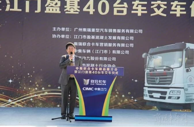 12月4日上午9:58分,联合卡车江门区域推介会暨江门盈基40台轻量化搅拌车交车仪式在一片欢声笑语中拉开帷幕。