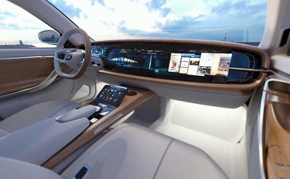 内饰方面,最亮眼的地方在于中控采用一块横跨主副驾驶的TP-Touch人机交互系统,全长131厘米、高27厘米,由左、中、右三块各长30厘米的玻璃显示画面组成,支援语音及手势控制。此外,中屏和右屏还能够透过触控进行画面互换,可以提供导航、天气资讯等,同时让前座乘客享受在线通讯娱乐,而且支持无线投屏功能。后座配备两块显示屏,全车最多可同时连接四台手机。