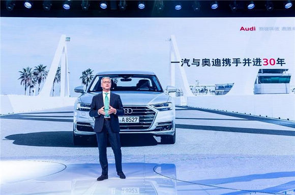 2018年是中国一汽与奥迪携手合作30周年,在发布会现场,中国第一汽车集团有限公司董事长徐留平先生表示:“30年来,中国一汽与奥迪携手并进,一汽-大众奥迪迈出的每一步,都开创了中国豪华车市场的先河。站在新的历史起点上,中国一汽将坚定支持一汽-大众奥迪的不断发展壮大,并与奥迪通力合作,加快实施‘十年商业计划’,继续保持并刷新中国豪华车第一的纪录。”