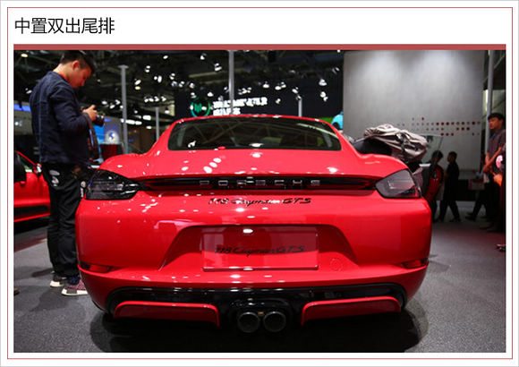 718 GTS车辆尾部同样使用全新的空气动力学套装,并带有专属铭牌、20英寸轮圈、通风刹车盘以及刹车卡钳等,尾部扰流尾翼可以让车辆在高速行驶过程中自动开启。同时新车还配有车道变换辅助功能,车速超过15公里/小时的速度行驶,系统会在后端使用雷达传感器来监控车辆后方的区域和驾驶员死角。