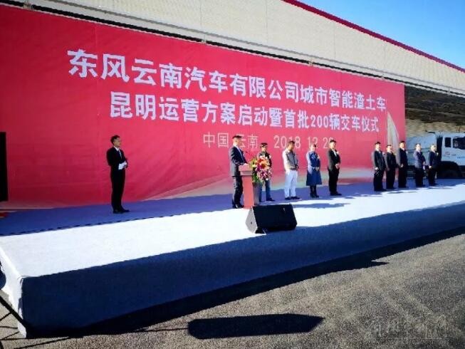 12月26日上午,东风云南汽车有限公司城市智能环保渣土车昆明运营方案启动暨首批200辆天龙KC渣土车交车仪式在昆明隆重举行!