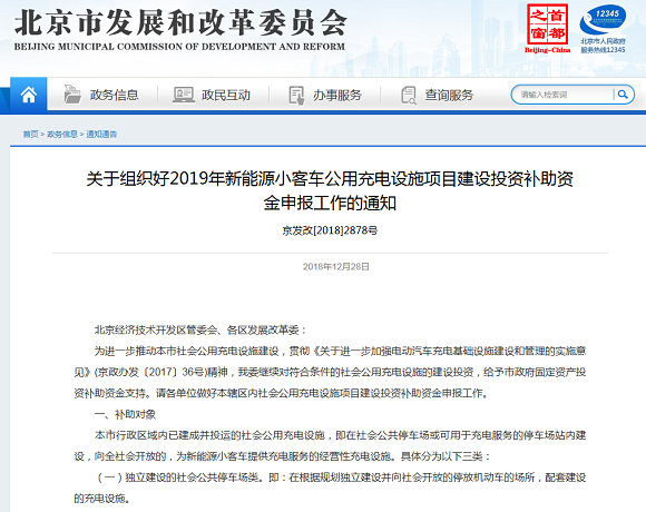 为进一步推动本市社会公用充电设施建设,贯彻《关于进一步加强电动汽车充电基础设施建设和管理的实施意见》(京政办发〔2017〕36号)精神,我委继续对符合条件的社会公用充电设施的建设投资,给予市政府固定资产投资补助资金支持。请各单位做好本辖区内社会公用充电设施项目建设投资补助资金申报工作。