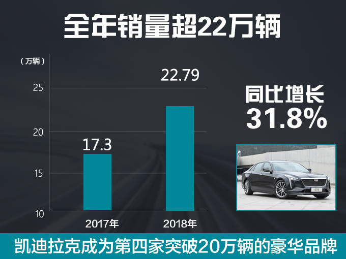 凯迪拉克2018年在华销量突破20万大关,达227,997辆,同比增长31.8%。凯迪拉克在中国市场成为继奔驰、宝马、奥迪后第四家突破20万年销量的豪华品牌。