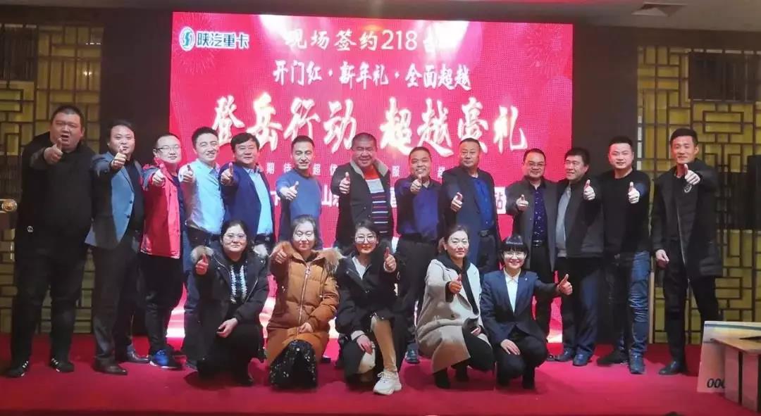 2019年1月6日,由滨州锦亿汽贸主办“登岳行动 超越豪礼” 陕汽重卡2019山东区域新春盛典滨州锦亿站举行!活动以“超期待、超优惠、超服务、超价值”的促销政策吸引客户160余人,现场签单达到218辆!
