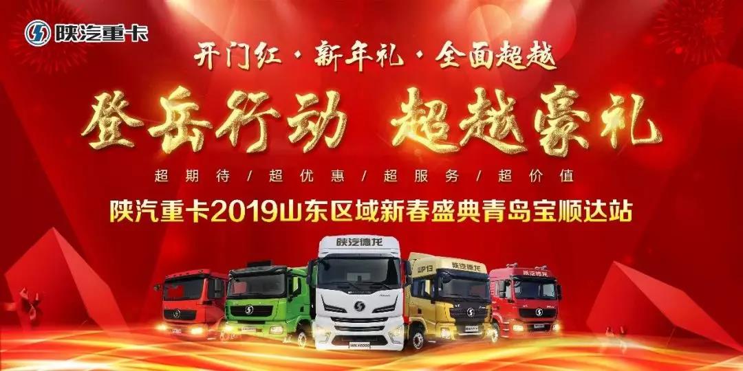 2019年1月5日,山东区域青岛宝顺达新春盛典举行。陕重汽销售公司济南办事处区域总经理赵鹏,潍柴动力青岛办事处主任胡文辉,法士特青岛办事处主任刘贵玉以及各渠道合作伙伴,核心二级经销商,陕汽重卡忠实用户共200余人一同参与了此次盛典,现场订车118辆。