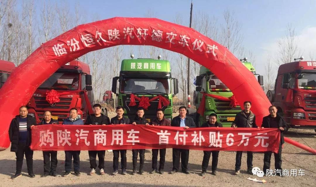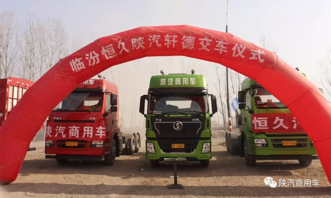 2019年1月13日,陕汽商用车联合临汾市尧都区恒久货运有限公司在洪洞县曲亭镇举办轩德3系天然气牵引车批量交车仪式。