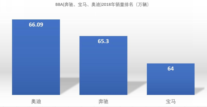 从历年市场份额看,豪华汽车品牌在国内乘用车市场销量占比不断攀升,而奥迪、奔驰、宝马三家的在华销量表现依旧相差无几,其中奥迪以66.09万辆在2018年排名第一,奔驰则在2018年销售65.3万辆位列第二,宝马则以64万辆的累计销量排名第三。从数据可以看出,第一和第二名销量差距不足8000辆。面对如此焦灼的局面,奔驰、宝马、奥迪也在2019年制定了不同的新品战略,以冲击新一轮的豪华品牌销量冠军。