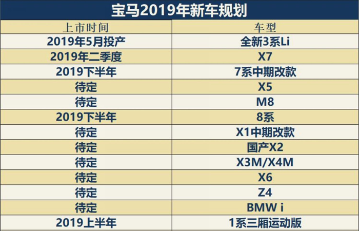 宝马目前并没有提出明确的在华销量目标,不过从产品层面看,其将在国内推出14款车型,涉及宝马X7、新款7系、全新3系、M8、8系、新款X1等,其中宝马X7将于第二季度上市,新款7系和8系则是在下半年陆续开始销售;此外,宝马X2也将迎来国产。