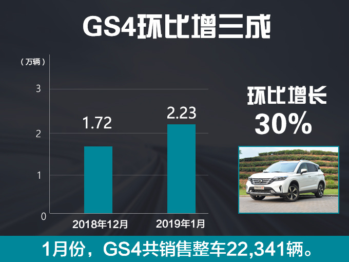 广汽传祺1月销量大涨45.16% GS4 SUV增30%