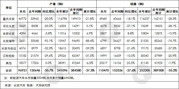 长安汽车1月产销双降,产销降幅分别为38.37%和40.14%
