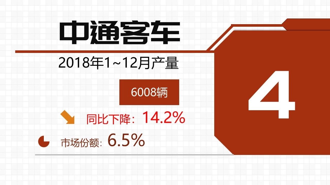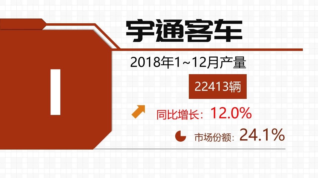 2018年纯电动客车产量数据出炉了!全年累计生产纯电动客车9.3万辆,同比增长5%。宇通毫无悬念夺冠,市场份额24.1%,几乎达到四分之一;后起之秀比亚迪拿下第二,市场份额12.9%。值得一提的是,宇通和比亚迪是唯二产量过万的企业,并且它们都实现了10%以上的增长。