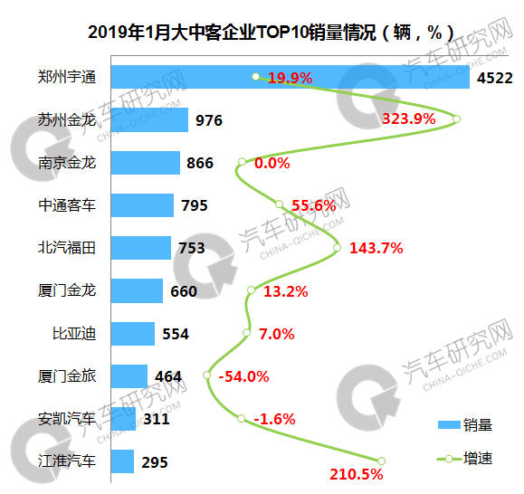 宇通大中客地位稳固 苏州金龙实现超300%增长