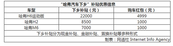 随着国家十部委联合推出促进汽车消费相关政策,阔别十年之久的“汽车下乡”再次启动。2月22日,从哈弗汽车官方获悉,企业已在全国范围内开启“哈弗汽车下乡惠民补贴千万家”活动。凡在活动期间内,符合活动规定购买H6、H2及M6车型,可享最高2.2万元汽车下乡补贴,及最高价值4999元购车红包。此次活动从即日起到2月28日为止。