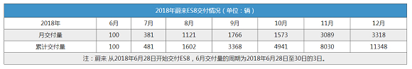 2018年蔚来ES8交付11348辆/产量12775辆