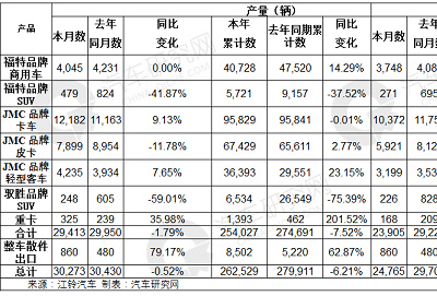 江铃汽车发布2018年11月产销快报,销量同比下降9.25
