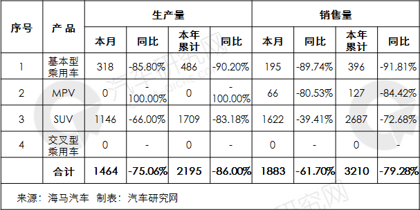 海马汽车2月业绩惨淡 产销量均仅超千台