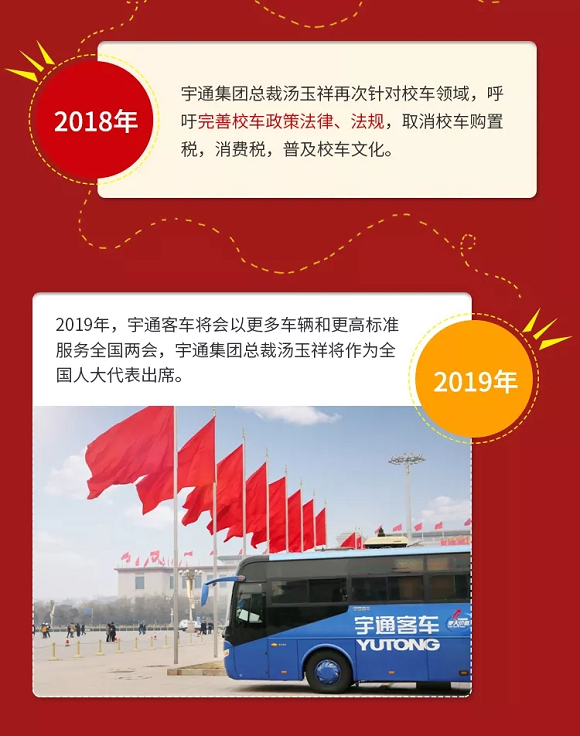 从2005年亮相全国两会至今,宇通客车连续服务全国两会从未缺席。2019年,宇通集团总裁汤玉祥将作为全国人大代表再次出席盛会。