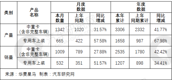 3月7日,华菱星马发布2019年2月产销快报。数据显示,中重卡(含非完整车辆) 2月累计生产3306辆,同比增长41.77%;累计销售2535辆,同比增长42.42%。