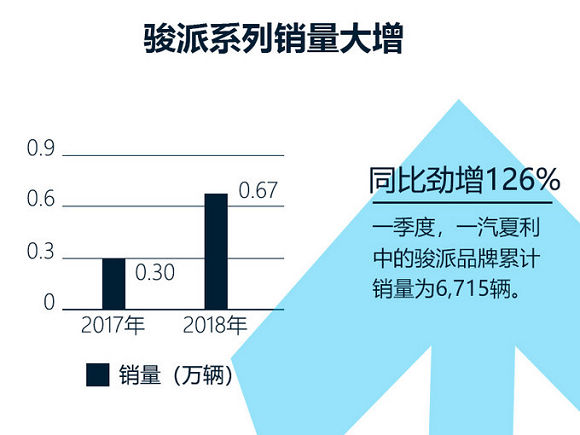 销量表现上,天津一汽在2018年首季度销售整车为6,810辆,同比增长2.14%。其中骏派品牌累计销量为6,715辆,同比大增126%,就目前竞争愈发激烈的市场状况而言,骏派系列的销量表现较弱,但是能够翻倍增长,也说明品牌具有一定的潜力。
