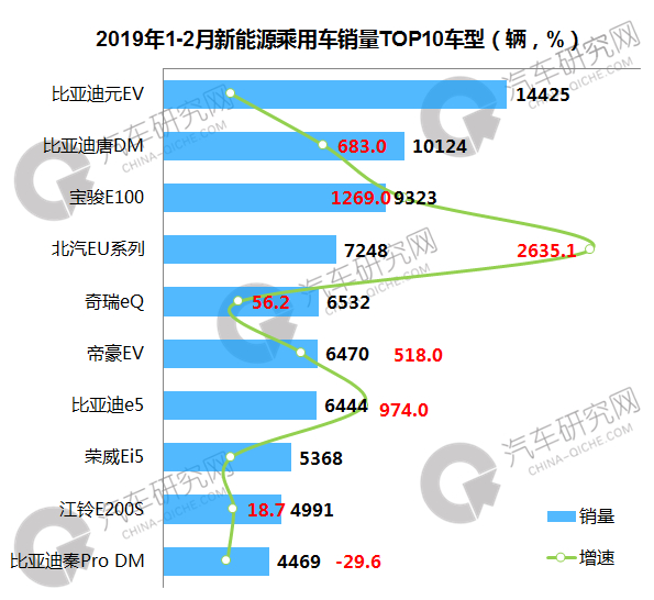 2月新能源乘用车车型北汽EU系列销量增幅超17倍 比亚迪