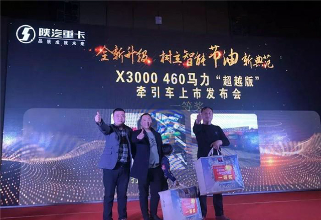 、托管服务等方面详细阐释了陕汽服务的优势,为广大客户提供“更快更省更智能”的优质服务,并从根本上走向终端,与终端客户实时互动,在信息共享的平台上快速服务客户,及时为用户排忧解难。陕汽、潍柴、平安租赁、渠道代表和客户代表共同为X3000