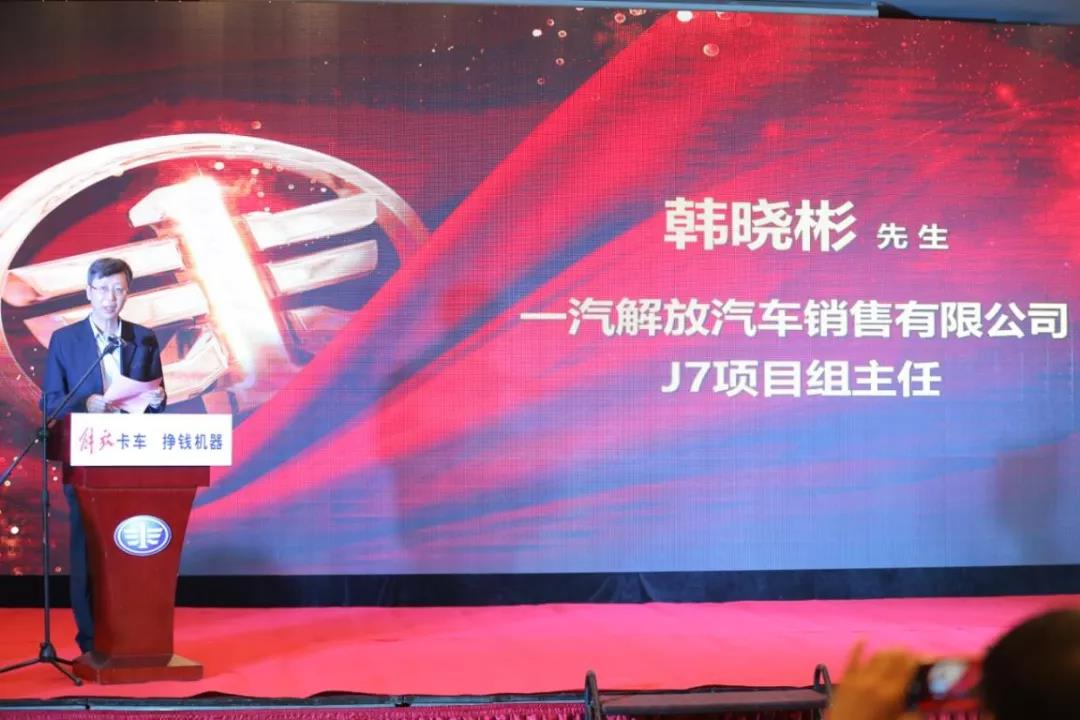 现场,一汽解放汽车销售有限公司J7项目组主任韩晓彬先生致辞,他表示:“解放努力的就是卡友所想的,助力用户更安全、更舒适、更高效、更快乐,帮助用户实现人生新跨越。相信在不久的将来,解放卡友们生活必将迎来别样的美景。”