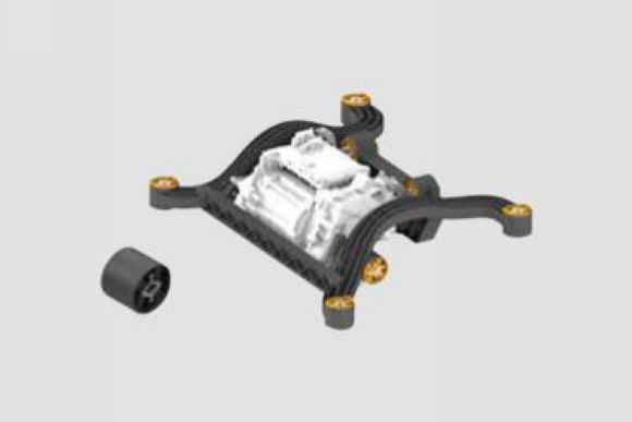 集成副车架电机悬置系统是一款专为满足电动汽车要求打造的发动机悬置系统。利用整合多个单独组件,来使整套集成系统设计更为紧凑,从而达到轻量化及高频下振动的减弱。