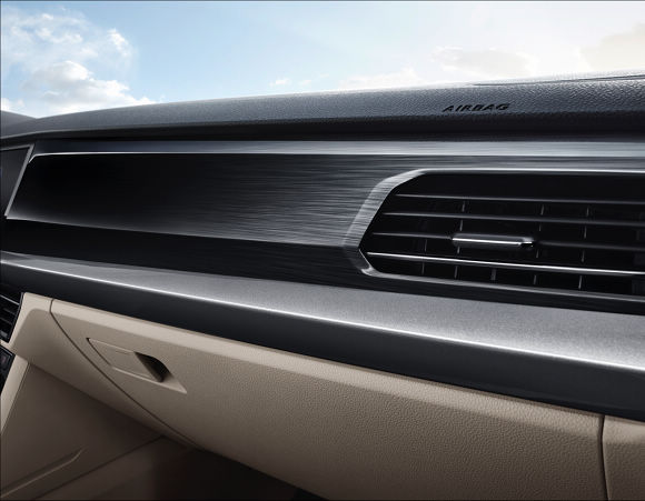 此外,与同级多数车型在车身少数部位采用镀铬装饰不同, 1.5L自动舒适版车型大量采用了中国消费者喜爱的镀铬元素。前脸上明暗相间的镀铬饰条,通过使用高光、亚光及电镀饰条等不同材质,在明暗光影相交间尽显大气与优雅。侧窗、双排气尾管造型也同样运用镀铬元素,配以精致车身侧标,整车的高档精致跃然眼前。