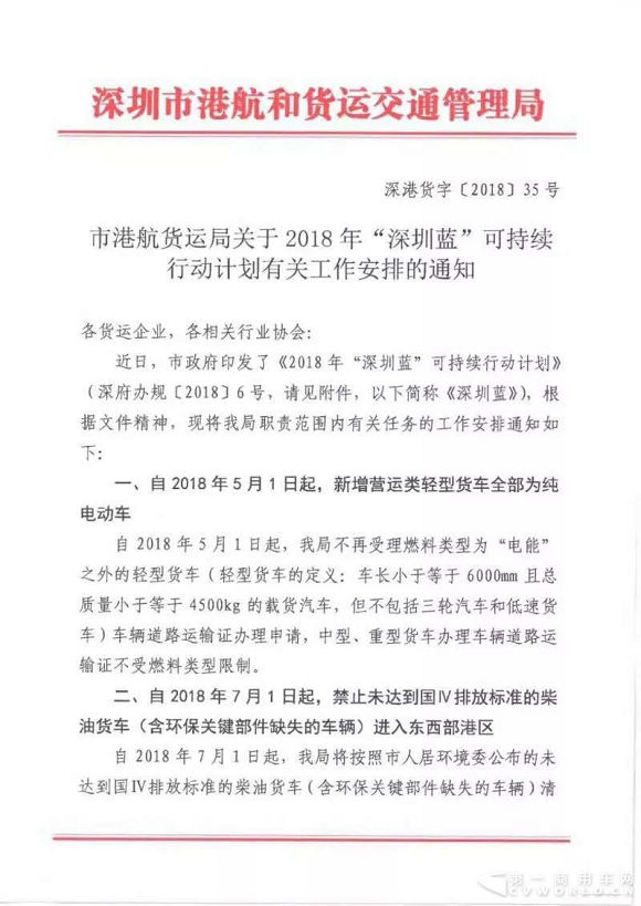 一、自2018年5月1日起,新增营运类轻型货车全部为纯电动车