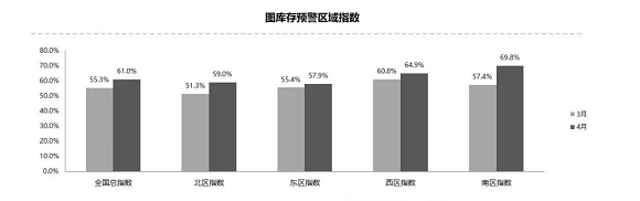 4月份全国总指数为61.03%,北区指数为59.0%,东区指数为57.91%,南区指数为69.8%,西区指数为64.86%。由于4月有清明节,南方部分地区消费者受传统习俗影响不在4月购车,导致南区指数较高。
