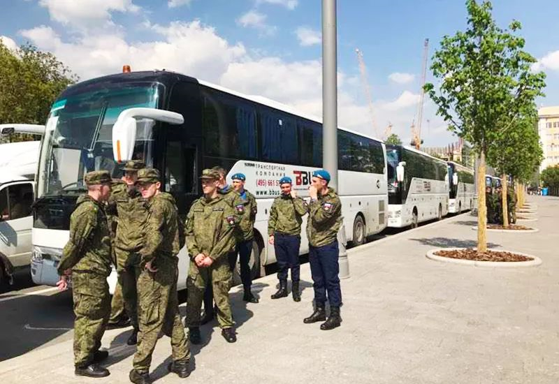 本次卫国战争胜利74周年阅兵活动,共有近200台宇通客车穿梭在莫斯科红场和城市街头,为阅兵式提供通勤运营服务,以保障红场阅兵式的顺利开展。
