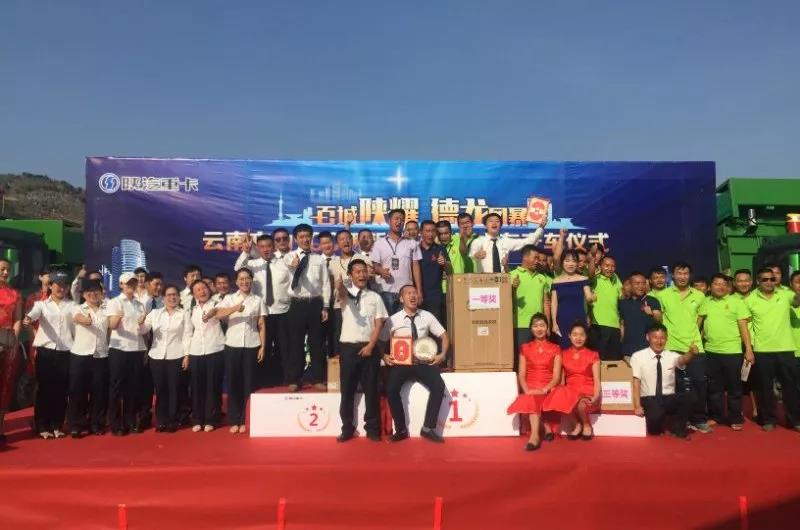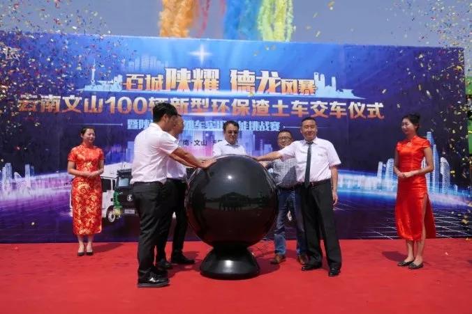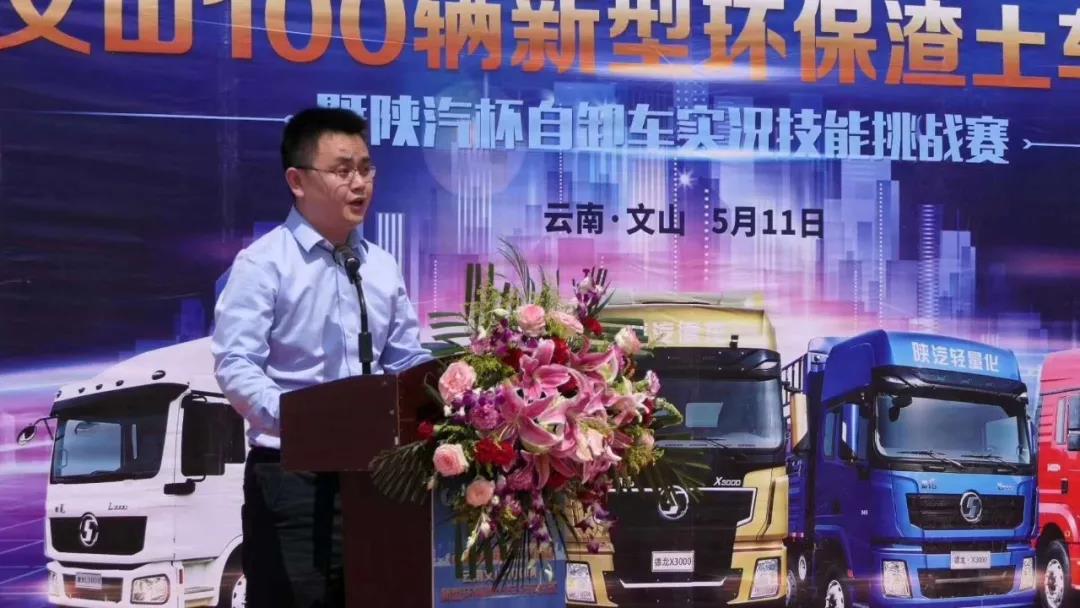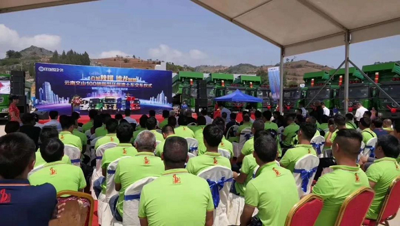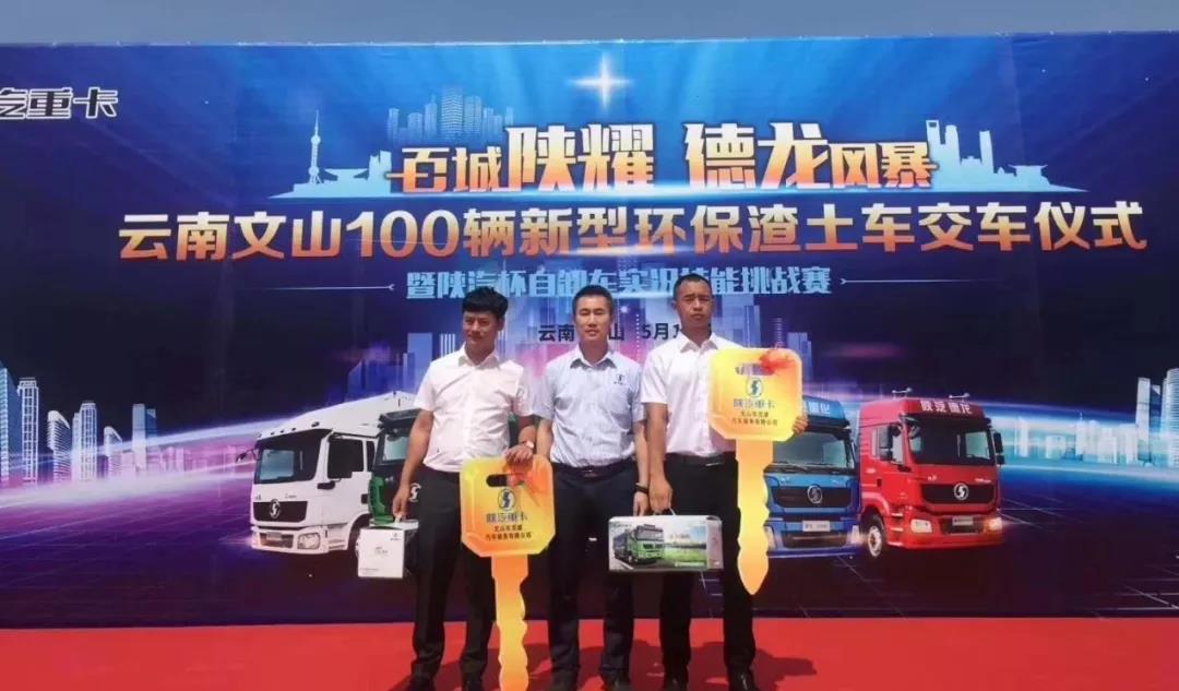 2019年5月11日,云南100辆新型环保渣土车交车仪式暨陕汽杯自卸车实况技能挑战赛在钟灵毓秀的文山举行。