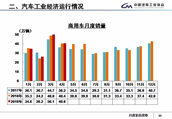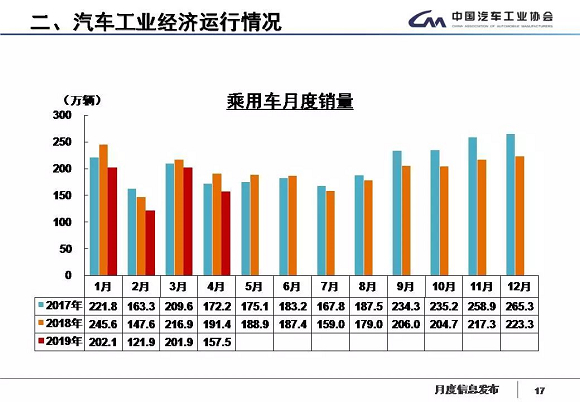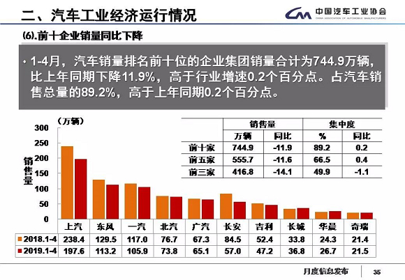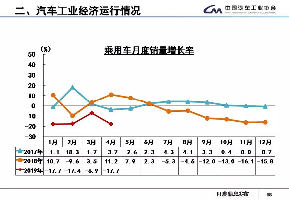 中汽协发布最新产销数据:2019年4月,行业继续承受较快下降的压力;行业产销整体下降的趋势没有有效缓解,当月汽车产销环比和同比均呈较快下降。1-4月,汽车产销降幅比1-3月略有扩大。