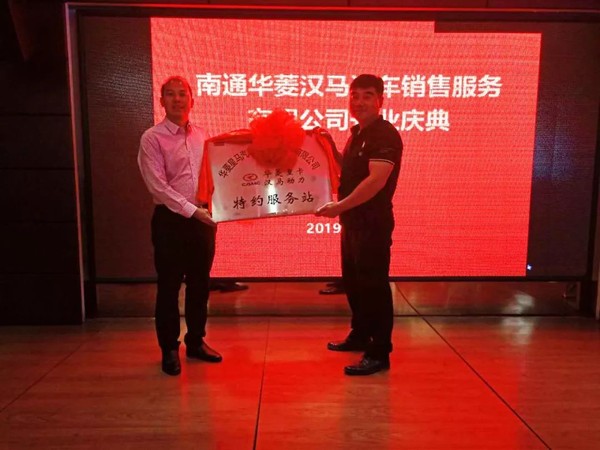 5月12日上午,南通华菱汉马汽车销售服务有限公司开业典礼暨客户答谢会顺利举行,近三百名当地新老客户共同见证,集团公司总经理助理葛晓生、凯马公司副总经理吴贤明参加了活动,葛晓生对南通华菱汉马服务站进行授牌。