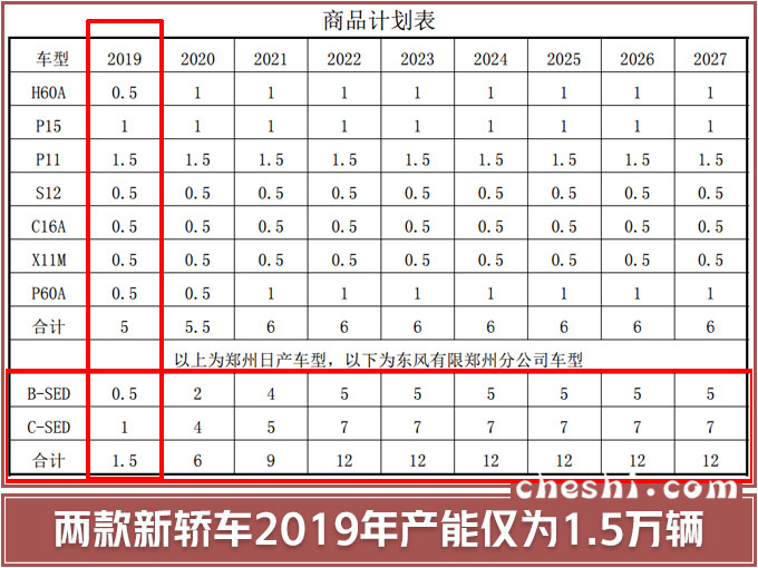 该项目在2019年竣工,投产B-SED和C-SED两款全新轿车,先期产能仅为1.5万辆/年,预计到2022年上升到12万辆/年。通过车身尺寸参数来看,两车与日产阳光、日产新轩逸(2019在售款)保持一致,但动力总成有较大差异。B-SED搭载1.6L/1.8L/1.2T/1.5T发动机,匹配CVT与MT变速箱,而阳光此前仅搭载1.5L发动机。C-SED搭载1.6L/1.8L/2.0L/1.5T/2.0T发动机,现款轩逸仅搭载1.6L和1.8L动力。两款车型动力都有明显提升,且均会推出纯电动版。