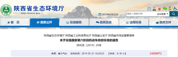 5月21日,陕西省生态环境厅、陕西省工业和信息化厅、陕西省公安厅和陕西省市场监督管理局联合发布关于实施国家第六阶段机动车排放标准的通告,7月1日起,陕西省关中地区(西安市、铜川市、宝鸡市、咸阳市、渭南市、韩城市、杨凌示范区、西咸新区)销售和注册登记的轻型汽车和公交、邮政、环卫等城市用途重型汽车应符合国六a阶段标准要求。