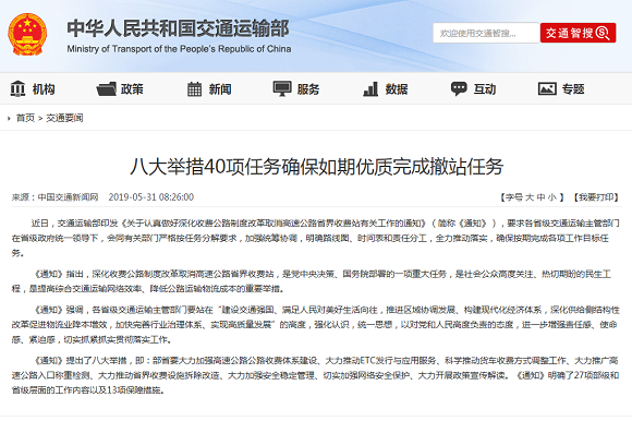 《通知》指出,深化收费公路制度改革取消高速公路省界收费站,是党中央决策、国务院部署的一项重大任务,是社会公众高度关注、热切期昐的民生工程,是提高综合交通运输网络效率、降低公路运输物流成本的重要举措。