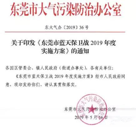 为坚决打好打赢蓝天保卫战,推动全市环境空气质量持续改善,近日,东莞市大气办印发《东莞市蓝天保卫战2019年度实施方案》,出台8个方面共36项工作举措,全面深化大气污染防治,力争2019年全市空气质量优良天数比例达88%,PM2.5年均浓度控制在35微克/立方米以下。详情如下: