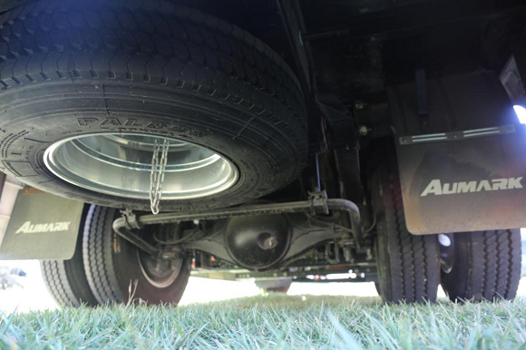 4.5吨级别的后桥充分保证了车辆的承载能力,此外还配有U型稳定杆提高车辆的稳定性。