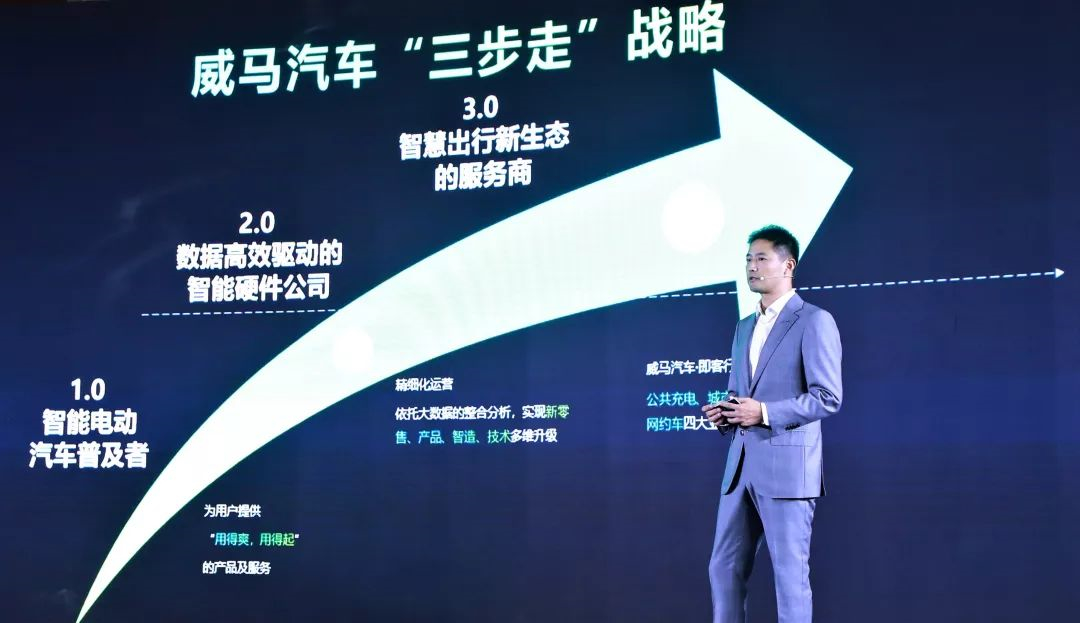 此前,威马汽车创始人、董事长兼CEO沈晖已提出威马“三步走”战略,“1.0 做智能电动汽车的普及者,让安全可靠、质量稳定、体验出色、成本合理的高科技产品普惠于民;2.0 成为数据驱动的智能硬件公司;3.0 成长为智慧出行新生态的服务商,连接智美生活全场景。”