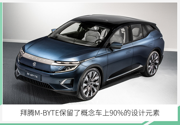 拜腾M-Byte保留了概念车上90%的设计元素,将数字化与美感、创新和匠心以感性的方式融于一体。同时,围绕实用性、安全性和整体品质展开优化,将实现比概念车更好的用户体验。拜腾M-Byte定位中大型纯电SUV,车身尺寸为4875*2195*1655毫米,轴距为2950毫米,同时这款SUV还采用了短前悬的设计,使其内部空间方面拥有极大的优势。