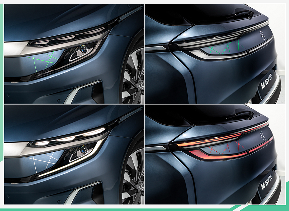 此外,拜腾M-Byte还保留了钻石造型的日间行车灯,并配备了矩阵式LED大灯。相比于概念车,拜腾应法规要求对M-Byte大灯的高度位置进行了调整,并增设了实体外后视镜。