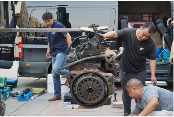 之前遇到过不少老旧的轻卡,由于长时间载货,驾驶室货厢位置会有变形塌掉的情况,不过这台车坚固的直通式大梁经过十年时间依然板正的很。原车配备的铝合金油箱在降重的同时也避免了传统铁油箱锈蚀带来的燃油污染现象。为了更直观的感受这个老伙计的状态,我们对车辆的发动机进行了拆解,在拆解过程中,发动机的各项性能状态也非常良好。
