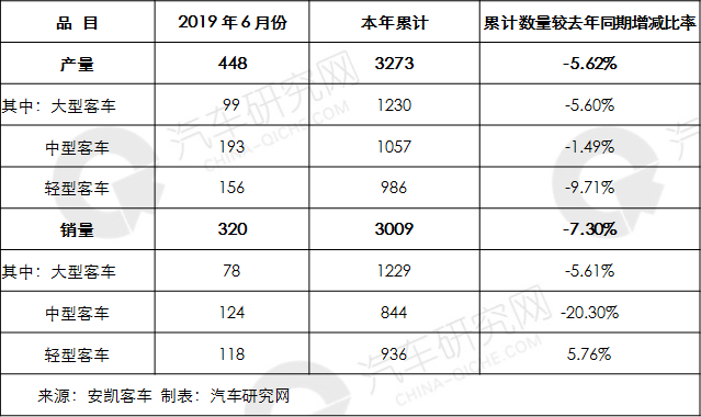 安凯客车发布6月产销快报 仅轻客市场实现增长