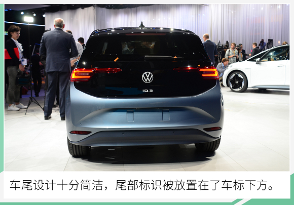 在尾部造型上,大众ID.3的设计极为简洁,整体视觉效果颇为前卫;两侧尾灯组采用LED光源,狭长的造型可以隐约看出延续了高尔夫的设计语言,点亮效果辨识度较高。新车尾门及保险杠设计线条凌厉,同时牌照下方两侧还配有反光板。